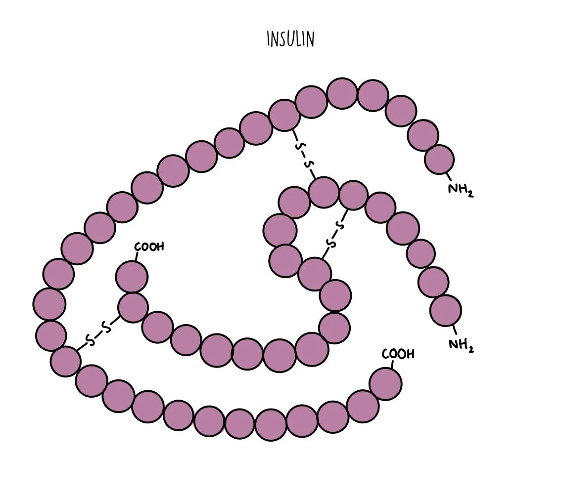 Insulin is a globular protein made up of two polypeptide chains joined together by disulfide bridges.