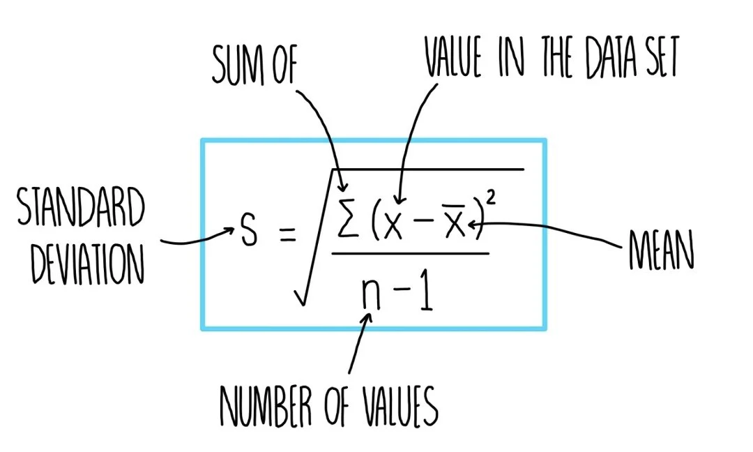 Divide this by the number of values minus 1 (4 -1 = 3). Then square root it to work out standard deviation.