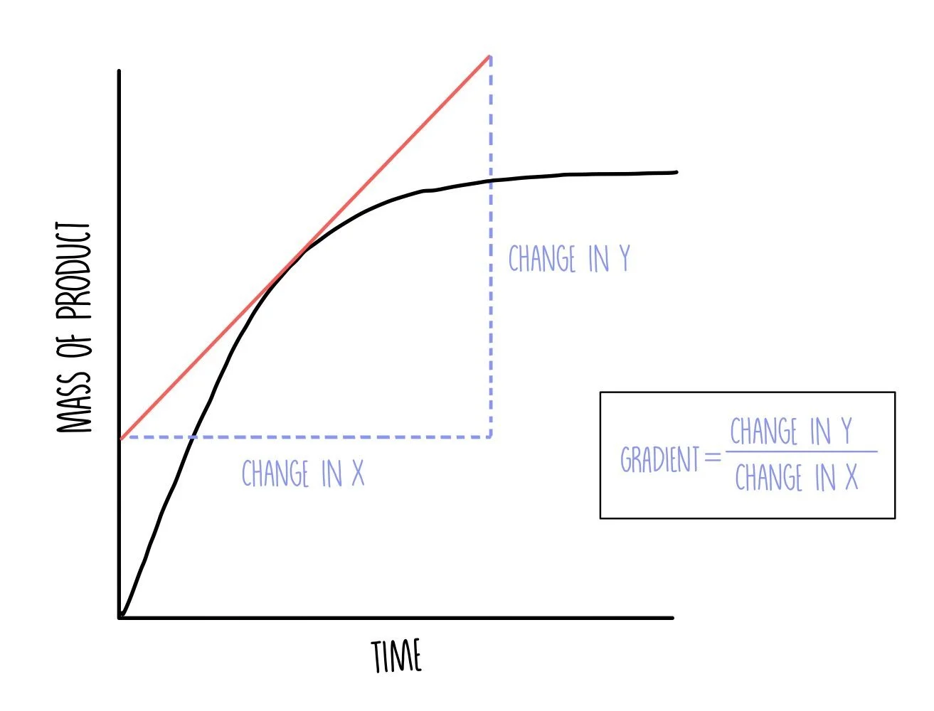 Plot a graph with time on the x-axis and volume of oxygen on the y-axis. You can determine the initial reaction rate by drawing a tangent to the curve at t = 0. Draw a straight line against the curve right at the beginning of the reaction and calculate the gradient by dividing the change in y by the change in x.