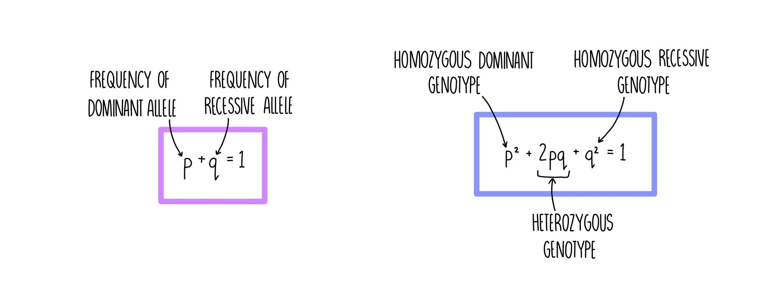 The Hardy-Weinberg principle uses two equations which you’ll need to learn for the exam: