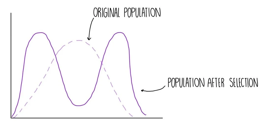 Alleles for an extreme phenotype are selected for and alleles for the mean phenotype are selected against