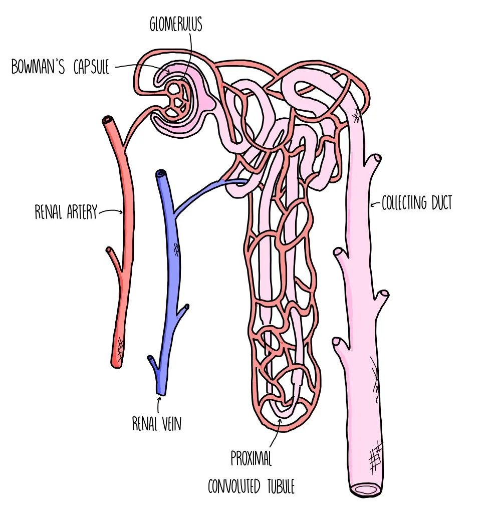 Kidney failure can be caused by diabetes as large amounts of glucose are are forced into and out of bloodstream, damaging the blood vessels within the kidney. Kidney failure can be treated with dialysis, which involves connecting the patient’s blood supply to a dialysis machine. Their blood is passed through a partially permeable membrane surrounded by dialysis fluid. The urea diffuses out of the blood and into the dialysis fluid, whereas glucose, water and salts move between the blood and dialysis fluid to reach normal concentrations. Dialysis involves multiple hospital visits where the patient is connected to the machine for long periods of time. In addition, the treatment is expensive and the patient still needs to maintain a carefully controlled diet.