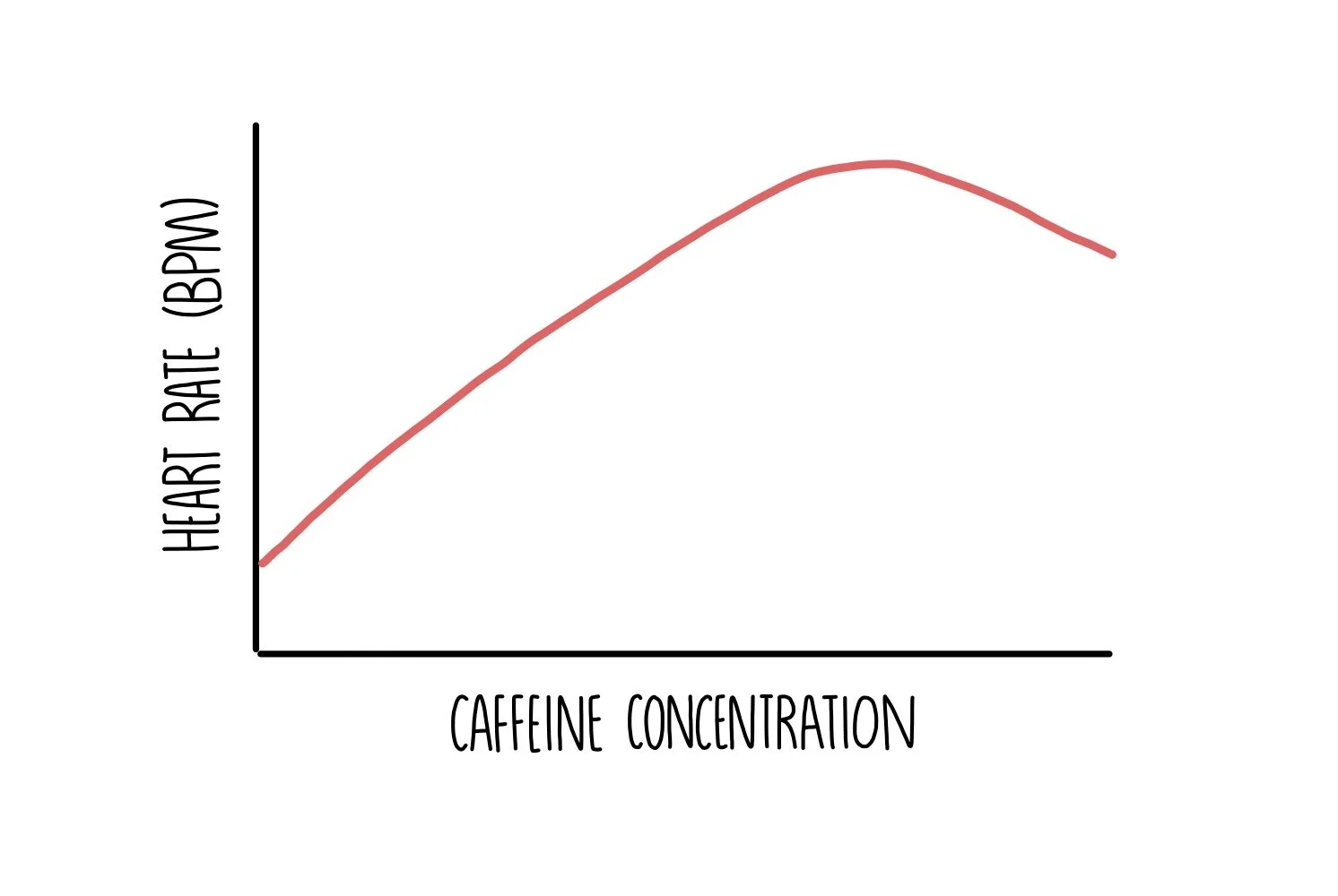 Once we have collected the data we need to plot a graph of heat rate on the y-axis and caffeine concentration on the x-axis. If all goes to plan, you will see that as the concentration of caffeine increase, heart rate becomes faster. However, as caffeine concentration becomes too high we will start to see a drop in the heart rate as the concentration of caffeine has reached toxic levels.