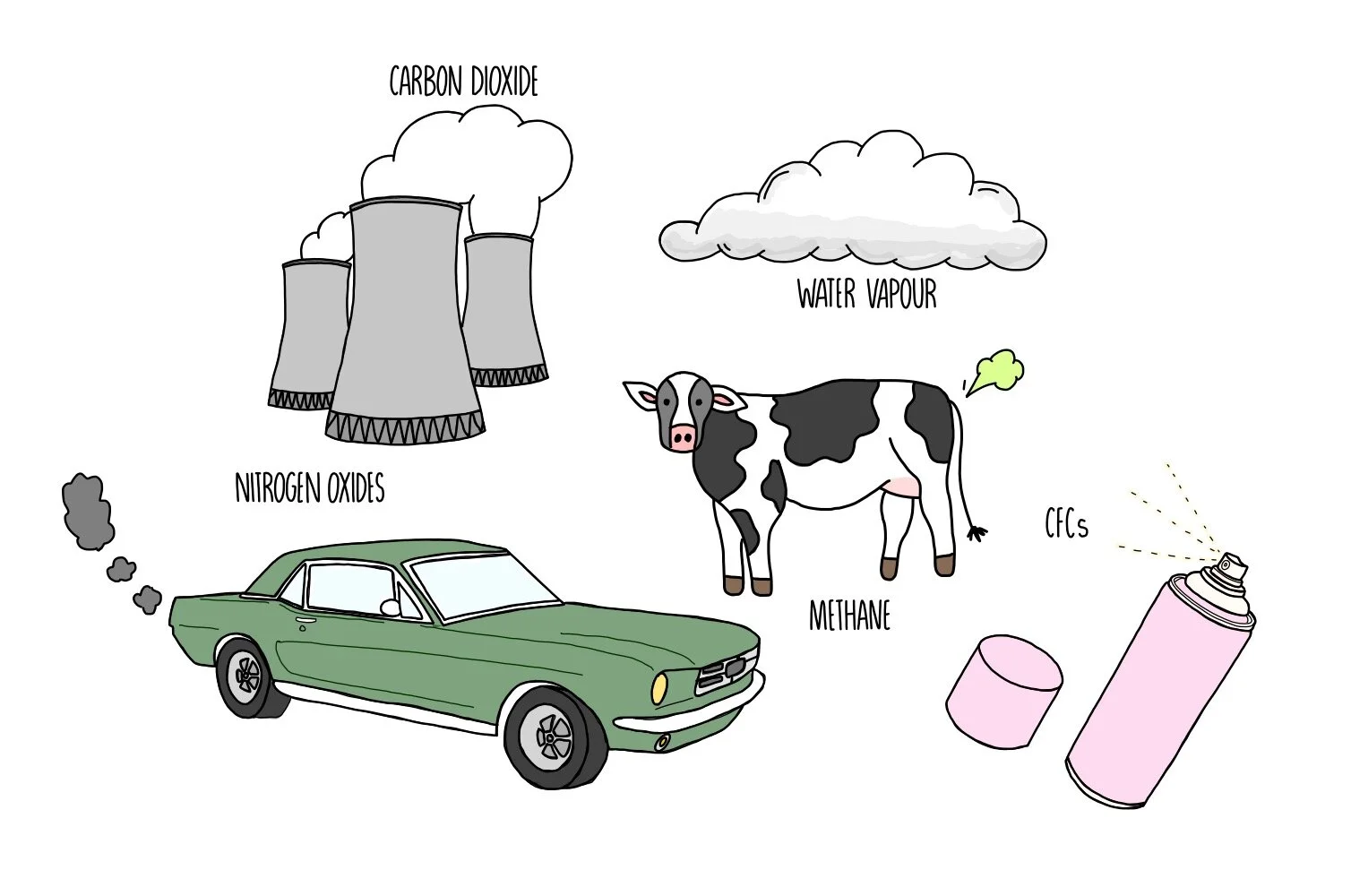 Human activities have caused a significant increase in the levels of greenhouse gases in our atmosphere. Large scale deforestation to make room for housing and agriculture means less carbon dioxide is absorbed by trees for photosynthesis. Burning fossil fuels to generate electricity or to power cars also increases the level of carbon dioxide, nitrogen oxides and water vapour in the atmosphere.