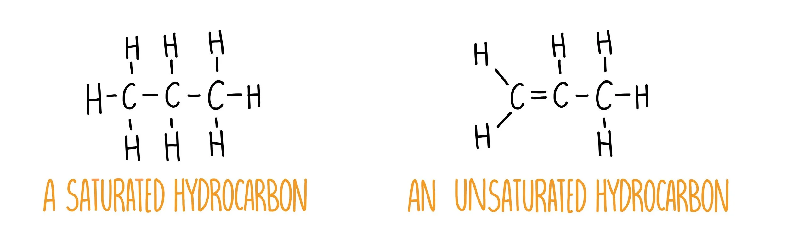 A hydrocarbon is a molecule made up of carbon and hydrogen atoms only. The carbon atoms can be joined together by only single bonds, which we refer to as a saturated hydrocarbon, or there may be some double carbon bonds which is known as an unsaturated hydrocarbon.