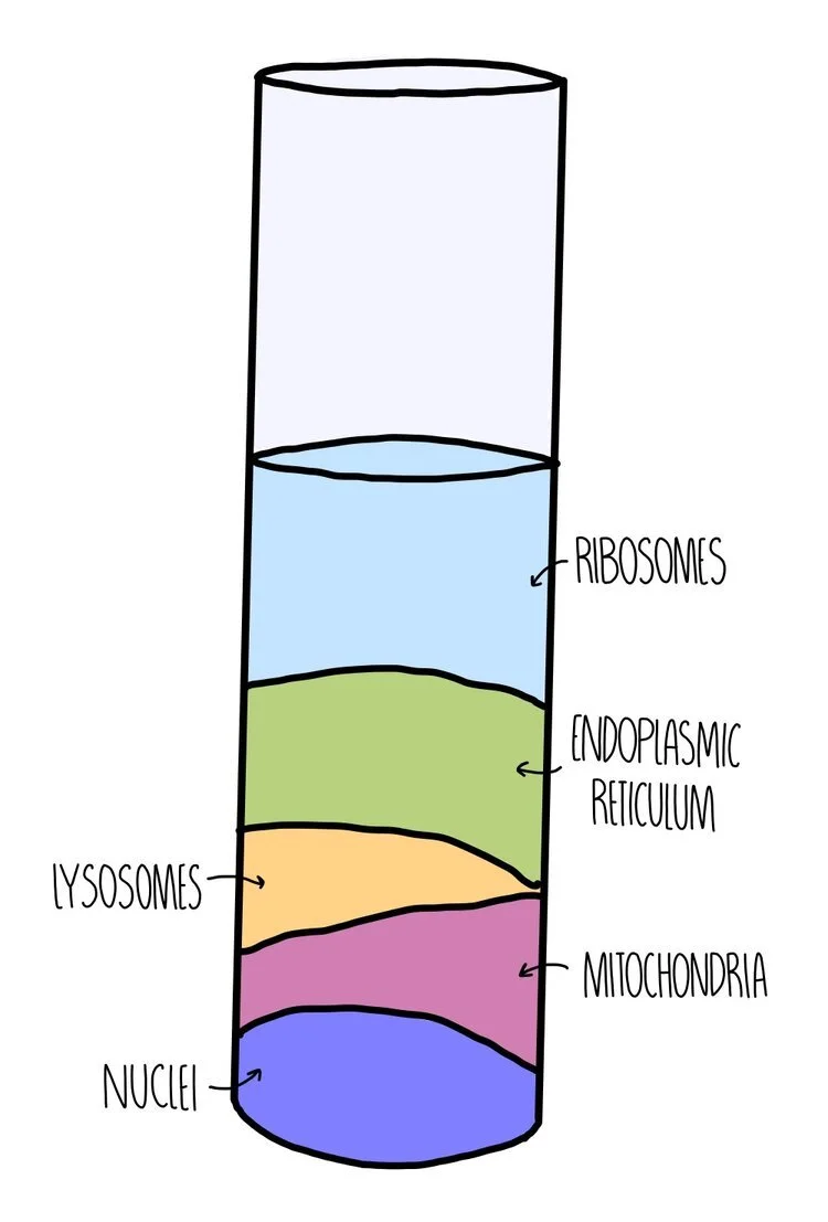 Cell fractionation is a technique which separates organelles according to their density - you might want to do this if you want to visualise certain organelles under the microscope separately. It involves bursting the cell surface membrane to release the organelles and spinning the cell solution at really high speeds.
