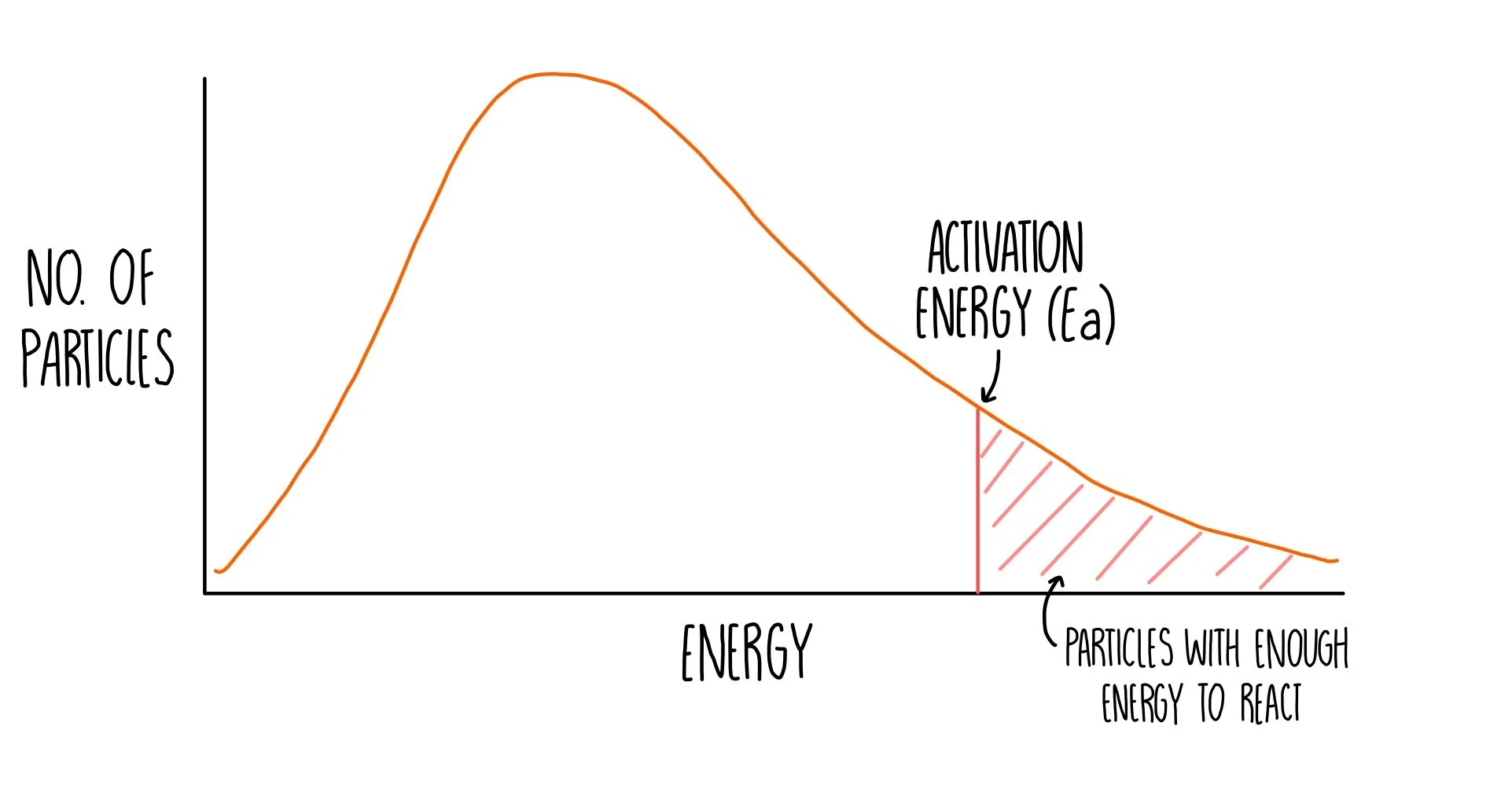Within a reaction, not all particles will have the same amount of energy — some have a little energy, some have lots but most will have an intermediate amount.