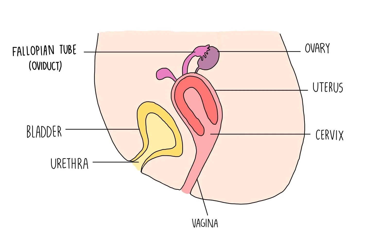 Female gametes are called ova (singular: ovum) which are found in the ovaries. After an egg matures in the ovaries, it is released into the oviduct (fallopian tube) and moves through the tube towards the uterus. The oviduct is lined with ciliated epithelial cells, which have finger-like projections called cilia to move and sweep the ovum along the tube. It is in the oviduct where fertilisation takes place, if the ovum successfully encounters a sperm cell. Once in the uterus, the fertilised egg (zygote) implants itself into the uterine lining where it will develop into an embryo. If no fertilisation occurs, the uterine lining will shed and pass out of the body during menstruation.