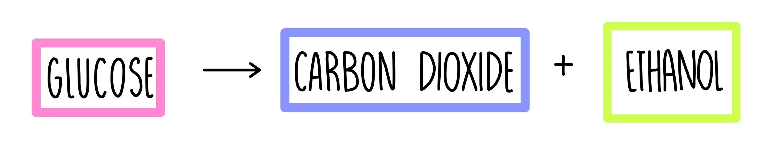 A slightly different form of anaerobic respiration happens in plants and yeast, where glucose is broken down into ethanol and carbon dioxide. This reaction is used in industrial processes, such as brewing beer and wine. It is also used in baking bread, since the carbon dioxide causes bread to rise.