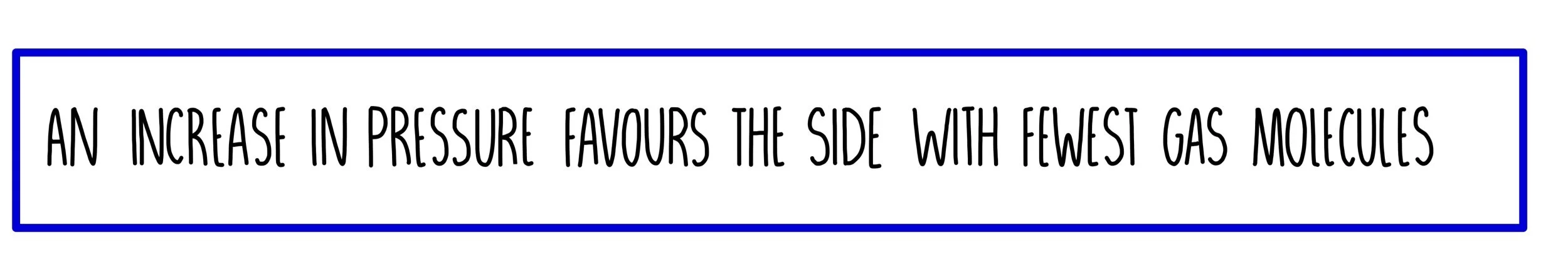 For example, the equation below represents the Haber Process which is an industrial process used to make ammonia for use in fertilisers. From the balanced symbol equation we can see that there are a total of four moles of gas on the left hand side of the equation and only two on the right. If we increase the pressure, the position of equilibrium will shift to the right hand side (towards ammonia) as this is the side with the fewest moles of gas. Alternatively, if we decrease the pressure, the position of equilibrium would shift to the left hand side where there are more moles.