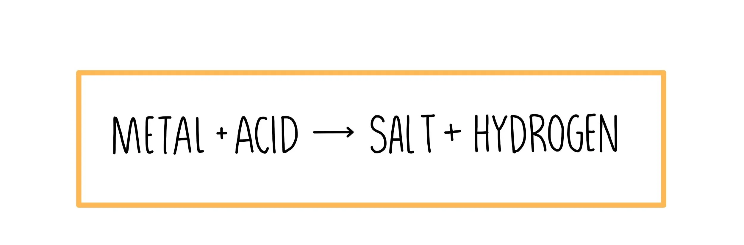 Metals react with acids to form a salt and hydrogen, as described in the equation below:
